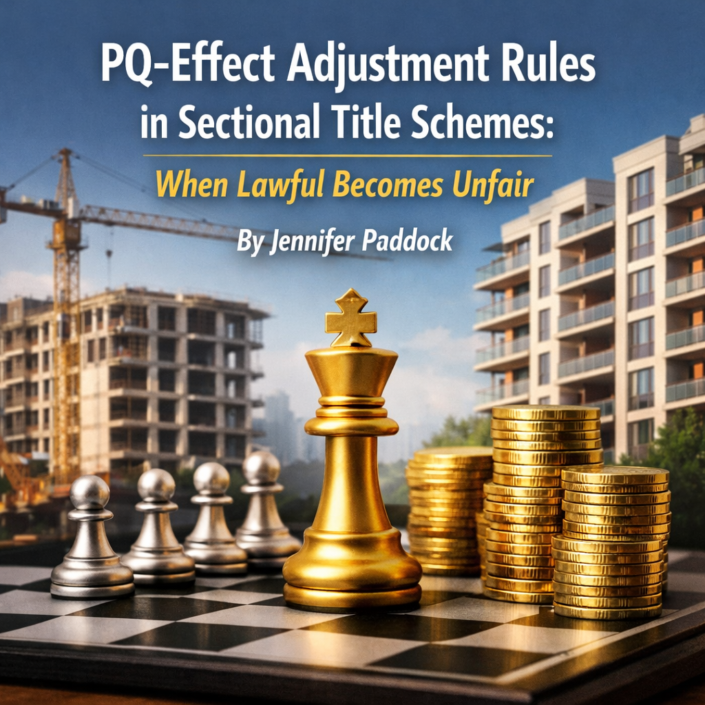 In this article, Jennifer examines how section 11(2) PQ adjustment rules often form part of a wider framework of developer-imposed control. She highlights how these mechanisms can entrench long-term imbalance in sectional title schemes, and outlines what bodies corporate can do to restore fair, owner-led governance.